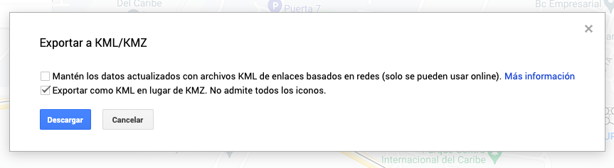 Te pedirá que selecciones el formato en el que va a guardarse y seleccionas KML.