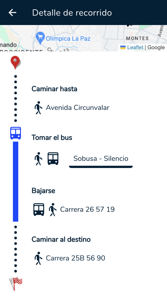 Se mejoró el flujo del viaje y se seccionó de forma más organizada cada sección del viaje. Ahora la selección de cada paso en el trayecto te puede mostrar en dónde subir o bajarte, también mostrar los detalles de la ruta sin que interfiera el uno con el otro.