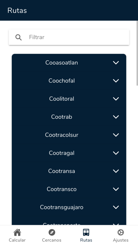 ¡Por fin! Una forma más fácil de encontrar mi ruta preferida, ahora podemos buscar las rutas por nombre o por empresa, simplemente será, escribir.